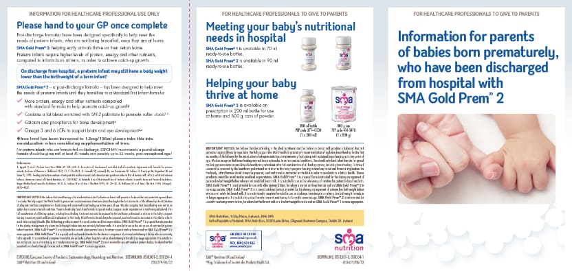 2. SMA Gold Prem® 2 datacard. Currently available from SMA Nutrition UK & Ireland website (accessed April 2023)